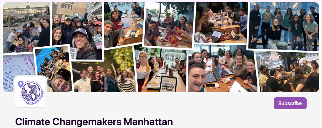 Climate Changemakers have two chapters in NYC, in Brooklyn & Manhattan. Click on the icons below to see the details of when and where they meet.
